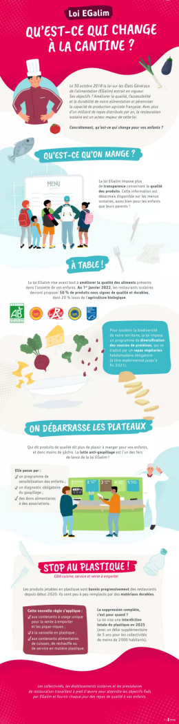 A noter que la Loi EGALIM impose au 1er janvier un total hors taxe de 50 % de produits de qualité dont au moins 20 % en agriculture biologique.